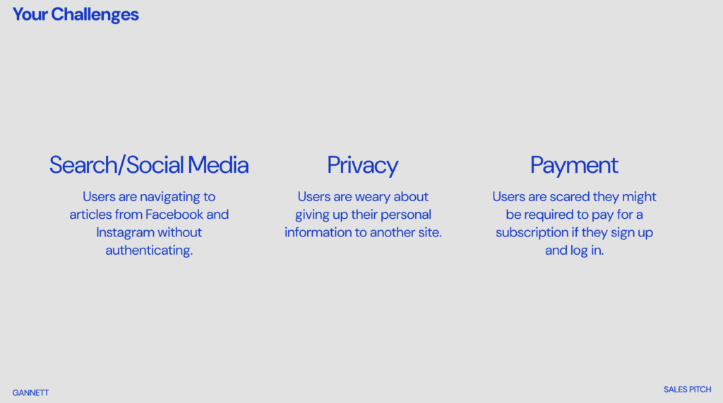 As the lead designer on a project for Gannett (USA Today), I was responsible for addressing a critical challenge: users were not signing into the website, yet the company sought to leverage analytics to enhance engagement and personalization.